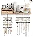 Wall Mounted Jewelry Organizer: Jewelry wall organizer is made of rustic wood with carbonized finish, creating a rustic and stylish look that complements a variety of decors. No tangled necklaces, no missing earrings, easily pick the right accessories for the day.