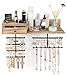 💝【4 in 1 Hanging Jewelry Organizer for Wall】Unprecedented large capacity and 4 functional areas in one. The jewelry holder features 1 wood shelf for storing your makeup or daily accessories, 1 ring box for holding 35 rings for the ultimate organization and easy display, 1 rotating peg board for hanging ear studs and earrings, 2-tier rotating necklace rack for displaying necklaces and earrings.