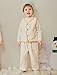 Scalloped picot trim at crew necklines. Bottoms feature elasticized waistbands. Pants have banded cuffs.