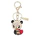 1 Piece 3D Crystal Panda with Love Heart Charm Keychain with Lobster Clasp.