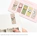 It consists of 10 different pieces, each has different design. The main concept of these bookmarks are pastel solid color.