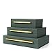 High quality storages – the surface is made of fine PU leather with green linen fabric pattern, the interior is well lined with faux suede that touched soft and smooth. And the construction is made from MDF.