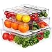 🧊 SET OF 10 FRIDGE STORAGE CONTAINERS - The set includes 3 different sizes, 1pcs large size 12×12×3.75 inch, 3pcs medium size 10.5×3.8×3.5 inch, and 6pcs small size 45×3.0×3 inch. The large container can store lettuce, carrot, and other veggies; 3 medium containers are perfect for cucumber, tomato, and spaghetti; 6 small containers are perfect for strawberry, grape, and other fruits or cereal, space-saving & no odor.