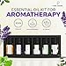 The set includes 6 oils, lavender, tea tree, eucalyptus, peppermint, lemongrass and sweet orange