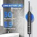 Multi-function Electric Toothbrush: 2 minute timer interval pause reminding each 30 seconds to encourage dentist-recommended brushing habit.2 Round brush head included, Nylon Round-end bristle less harm to gums and teeth. IPX7 Waterproof for Shower and Bathing