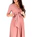 Maternity half sleeve front tie faux wrap dress designed with comfort in mind for every stage of pregnancy.