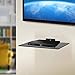 TEMPERED GLASS SHELF: Conveniently mount this shelf to the wall under your TV for an easier connection to your media devices. Platform measures 14"x9", holds up to 12lbs and is made of tempered glass for added safety