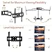 Upgrade Your Viewing Experience: Wall mount TV bracket makes viewing more comfortable. Tilts TV up 5° and down 15° to reduce glare, ±45° swivel and ±4° level adjustment for maximum viewing flexibility. Full motion TV mount with 6 articulating arms is capable with 16.6" extension and 2.5" retraction to wall.