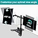 Consider Every Angle - Looking for a more dynamic way of working? MOUNT PRO dual monitor Desk mount is your first choice. This computer monitor mount offers +90° to -45° of monitor tilt, 180° of swivel, and 360° of rotation to maximize ergonomic comfort. The monitor arms for 2 monitors/screens are height-adjustable and can customize your monitor combination, which is more convenient and efficient for design and data analysis work.