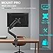 Quality design: passing 10,000-cycle test - Our MOUNT PRO desk computer mount is created with the precise combination of durability, capacity and style. The monitor arm is built for thousands of movements by passing 10,000-cycle test. Elevates your monitor to relieve neck and back strain and optimizes desk space. Innovative gas spring technology allows for freely/effortless monitor adjustment.