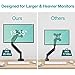 Excellent Quality and design - As more and more large and heavy monitors and deeper tables are available, but common monitor stands can't support them, this MOUNT PRO upgraded monitor mount is here to help. Larger monitor arms and bases provide upgraded loading capacity. Securely and easily hold monitors up to 35 inches and supports 4.4-26.4lbs monitors. Compatible with VESA 75x75mm and 100x100mm.