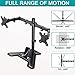 Multiple Adjustments: This dual monitor mount can help to position your screen at a more ergonomic viewing angle. The adjustable articulating arm provides ±45° tilt, 180° swivel, and 360° rotation for a wide range of vertical and horizontal screen positions.