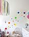 Materials and colors: Mozamy Creative dots wall decals are printed on bright colors high-quality vinyl. Colors include red, orange, yellow, green, turquoise, deep blue and purple. These primary rainbow color peel and stick dots decals can transform a boring space into a colorful world