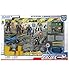 INCLUDED IN THE PURCHASE OF EMERGENCY CAR GARAGE PLAYSET SETS - Includes 1 Mozlly Emergency Parking Garage Playset that comes with 2 Heliport Stations, one Fire Rescue Play Set that includes 1 Red Helicopter, 1 Fire Department Vehicle, 1 Fire Fighter figure, and 1 building set with labeling stickers, and one Police Parking Lot Play Set that includes 1 Blue Helicopter, 1 Police Vehicle, 1 Police Officer figure, and building set with stickers.
