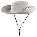 One Size Fits Most: Head Circumstance about: 22.04-22.83", Hat Height: 3.54", Wide Brim Length: 2.36", you can easily adjust the size for optimal fit with the elastic drawstring buckle behind the fishing hat. The ventilation eyes on both sides of the cap keep your head breathe. Adjustable detachable chin strap ensures your hat will not be lost on a windy day.