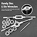 CONVENIENT TOOLS: Our kit includes a 2-piece screwdriver pitch gauge, a screwdriver, a die-stock handle wrench, an adjustable tap-handle wrench, and a die size adapter. This set comes in a heavy-duty blow-molded case for easy storage and travel.
