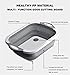 EASY TO USE: The collapsible cutting board is made of food-grade silicone, which is flexible and non-slip. The foldable cutting boards for kitchen are safe to use and can be used to chop, dice, mince, slice, and any food. The collapsible tub is also easy to clean and can be washed with soap and water.