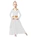 ❥❥ Kids little big girls praise long sleeve dance dress gold wetlook metallic waistband loose fit full length liturgical lyrical chiffon dancewear celebration of spirit pleated maxi worship gown.