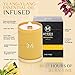 Presented in a beautiful 19 ounce glass jar; can be repurposed and enjoyed for years to come; topped by a brushed silver tone metal lid