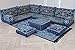 WHAT'S INCLUDED: The full set comprises 14 individual pieces; 2 floor seating cushions, 5 backrest pillows, 2 armrest pillows, 3 floor pillows,1 matching rug and 1 pouffe. All parts of the sofa set, pouffe and pillows includes their inner fillings/inserts ( you will receive both the covers and their interior foam/ fillings after your purchase)