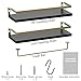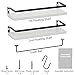 2*Floating Shelves, 1*Towel Bar, 5*Screw, 9*Wall Screw, 9*Plastic Anchors, 5*Hooks and assembly instruction.