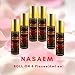 ABOUT NASAEM: A relaxing fragrance, akin to the soothing nature of a blast of morning breeze, this is fragrance of pristine floral woody notes and is held within a golden tinted bottle adorned with red stones.