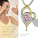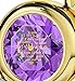 120 LANGUAGES I LOVE YOU NECKLACE intricately inscribed in 24k gold with a golden heart motif in tiny writing onto a dark purple brilliant round cut cubic zirconia gemstone, 0.6 inches. The romantic cz love pendant is prong set into a 925 sterling silver frame, 0.7x0.9 inches, including the bail