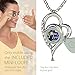 HEART-SHAPED PENDANT I LOVE YOU NECKLACE IN 12 LANGUAGES inscribed in pure gold onto a dark blue crystal Swarovski stone, 0.3 inches, prong set into the 925 sterling silver romantic heart pendant for women, 1x0.65 inches, embellished by 8 tiny clear crystal cz gemstones