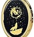 I LOVE YOU TO THE MOON AND BACK necklace pendant inscribed with a full moon, stars and a howling wolf in 24k gold onto a black oval onyx stone, measuring 0.8x0.6 inches. The elegant pendant for women is prong set in cameo style gold plated frame, 0.65x1.15 inches, including the bail