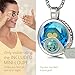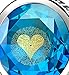 120 LANGUAGES I LOVE YOU NECKLACE intricately inscribed in 24k gold with a golden heart motif in tiny writing onto a brilliant round cut blue cubic zirconia gemstone, 0.6 inches. The romantic cz love pendant is prong set into a 925 sterling silver frame, 0.7x0.9 inches, including the bail