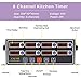 8 CHANNELS KITCHEN TIMER- Kitchen timer can be set for 8 multiple events at once. Time setting range from 00:00-99:59, can change from HH:MM to MM:SS.