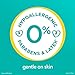 Gentle and hypoallergenic—0% alcohol, fragrance, parabens and latex* (*Natural rubber)