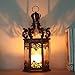 CONSUMMATE WORKMANSHIP - Inspired by Moroccan hookah lounges and Turkish bazaars, this alluring amber glass hanging lantern lends a touch of worldly flair to your aesthetic. Made from iron in a bronze finish, this exotic design strikes a hexagonal prism silhouette with intricate cutouts, scroll openwork, and a cylindrical chimney roof. Just add a tealight candle or flameless LED and this piece radiates light through textured amber glass for a calming glow.