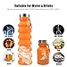 LEAKPROOF &FOLDABLE DESIGN - SAVING 60% SPACE:Our collapsible water bottles is flexible and durable,it is collapsible and can be rolled up to compact size by tie it with the strap .you can put it into backpack or just carry it with the adjustable strap. there are two sealing rings with the patented lids and spout cap to eliminates leaks and spills.