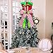 EASY TO INSTALL-There is a conical hole in side the elf (good for Christmas tree top), besides there are still two green belts with wire string, which can help you attach the elf topper on the tree top firmly.