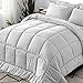 【Ultra Soft & Lightweight】Newspin full light grey bed in a bag is made of high-quality microfiber, the advantages are comfort, breathability and sweat absorption. A great choice for those who are sensitive to goose down or featherbedding. The full size light grey comforter inner fills 240GSM microfiber to meet your various sleeping posture requirements, and always remains lightweight and fluffy, and the cloud-like softness of the full light grey white comforter set keeps you comfortable and warm every night in all seasons.