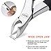 IDEAL FOR THICK NAILS; Perfect toenail nipper for your thick or ingrown toe nails due to fungus, diabetes, paronychia, aging and other health concerns; wide jaw opens up to 1 inch so you can easily trim even the toughest nails; Assist in ingrown toenail treatment as needed
