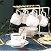 6 cups, 6 saucers + 1gold rack, 6 gold spoons.
