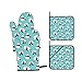GREAT DESIGN AND HIGH QUALITY – 7.5 inch length protects wrists and forearms; all oven mitts and pot holders are a combination of silicone and cotton for maximum flexibility and maximum heat protection; soft and super comfortable terry cloth interior.
