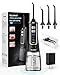 [Efficient & Effective] With a 1800 times/minute high pressure water pulse, 4 jet water flosser, and 360° rotating long nozzle, this cordless water flosser can powerfully and precisely clean 99.99% of food residue in hard-to-reach areas, improving gum health and teeth cleanliness.