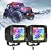 Upgraded: Miti-color 3" 18w Flush mount Led pods with chasing RGB Halo strip, the RGB Halo light& strobe effect controlled by both of remote and Bluetooth APP on Android or iPhone, support RGB light effect Sync with music rhythm in music mode, support DIY light effect. It can light up your dark road, wider your vision and decorate your truck.