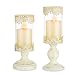 【Made a Statement】a pretty candle holder set, elegant metallic fillagree rim design, distressed ivory pedestal, beautiful glow goes through the glass sleeve, the pillar candle holder will make a great statement for your home