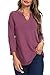 Features: This top has 3/4 roll tab sleeves, a flattering v-neckline, and a fit and flare style that looks great on any body type. The sleeves can be adjusted to suit the weather. It is available in solid colors or with a random floral print, and each tunic is made from the same patterned fabric (although the position of the floral print may vary). It's a versatile choice to match with denim jeans, pants, or skirts in various colors