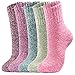 🍁COMFORTABLE TO WEAR - The plush stitching and elastic cuff enables the winter socks handy to slip on and take off, ensuring your socks not come off easily and bunch around your ankles, making your feet feel comfortable and warm. These fluffy socks for women are not easy to pilling or fade, can be worn for a long time.