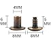 5 Different sizes: post diameter is 3/ 16 inch/ 5 mm, 5 kind of post length are 1/ 4 inch/ 6 mm, 3/ 8 inch/ 10 mm, 1/ 2 inch/ 12 mm, 9/ 16 inch/ 15 mm, 11/ 16 inch/ 18 mm; Screw and base diameter is 3/ 8 inch/ 10 mm