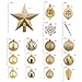 EXQUISITE CHRISTMAS TREE ORNAMENTS SET: The Christmas balls have several different surface and contain various shapes, sizes decorations(72 chirstmas balls, 11Christmas icicle ornament, 8 snowflakes, 4 Christmas pendants, 4 Pipe corn, 1 shiny star christmas tree top )that will make your Christmas tree look more beautiful.