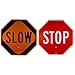 Visibility: the contrasting colors used on these signs make them easily visible even from a distance and in poor lighting conditions. The legend “STOP” and “SLOW” are printed in legible text to ensure better visibility