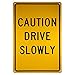 Easy Visibility: the traffic control sign shows the legend “CAUTION - DRIVE SLOWLY” in contrasting colors and clear, bold letters to ensure easy visibility in most lighting conditions and even from a distance