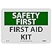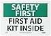 Header "SAFETY FIRST" and legend "FIRST AID KIT INSIDE"