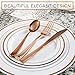 HEAVY DUTY & DURABLE TABLEWARE- Feel confident knowing that this rosegold dinnerware set is designed to be durable so that you can serve food and pour drinks with ease. Everything in this plastic set is disposable for your convenience. Dinner parties were never easier!